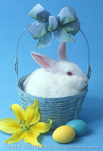 Description: bunny in a basket with eggs