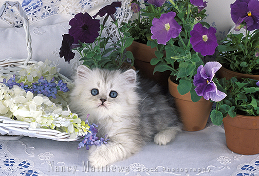 Description: shaded silver persian with pansy pots