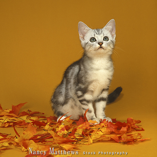 Description: american shorthair with leaves