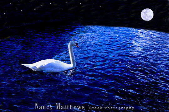 Description: swan in a pond in moonlight