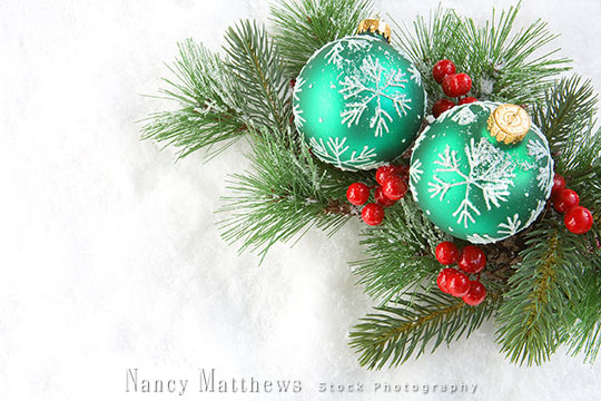 Description: two green ornaments with pine