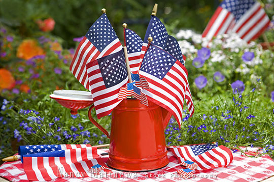 Description: american flags in a red teapot