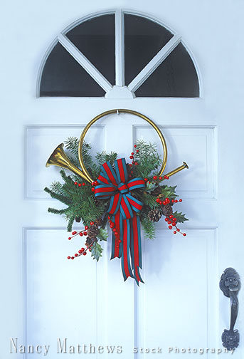 Description: christmas greens with a horn on a door