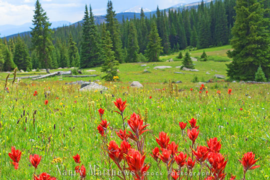 Description: indian paintbrush in a mountain field