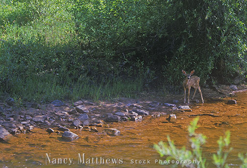 Description: fawn by a river