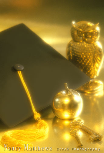 Description: mortarboard with owl, apple and keys