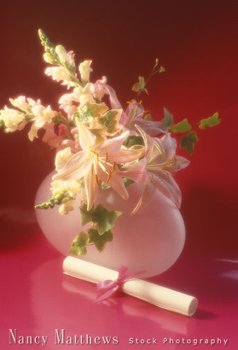 Description: diploma with a vase of flowers