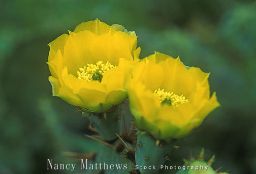 Description: yellow prickly pear cactus blooms