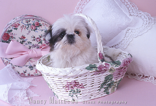 Description: cockapoo puppy in basket