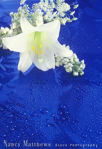Description: white lily on blue