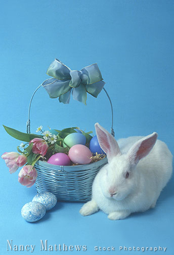 Description: white bunny with an easter basket
