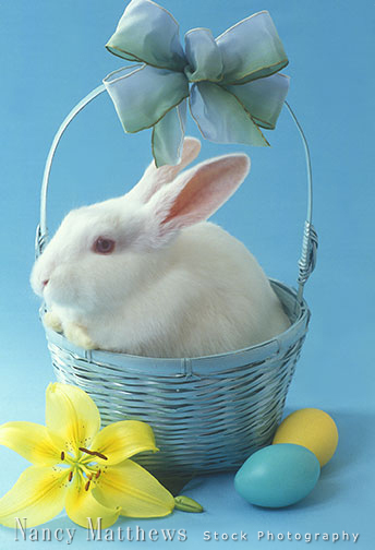 Description: bunny in a basket with eggs