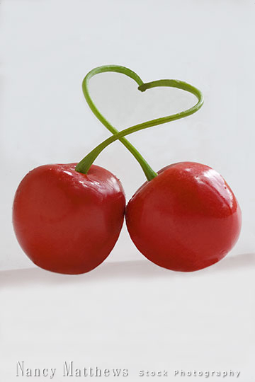 Description: two cherries with heart shaped stems