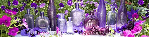 Description: purple bottles in a garden