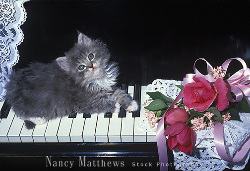 Description: kitten with flowers on piano