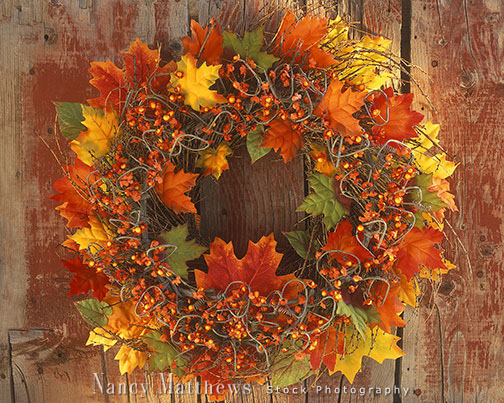 Description: wreath with maple leaves and bittersweet