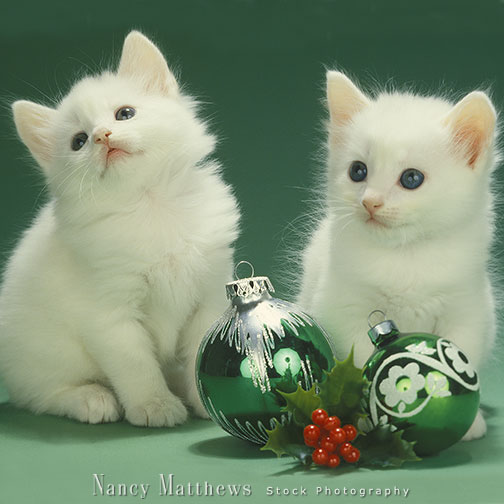 Description: two white kittens with ornaments