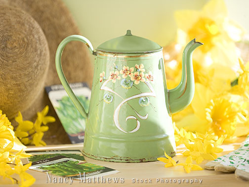 Description: enamel teapot with spring flowers