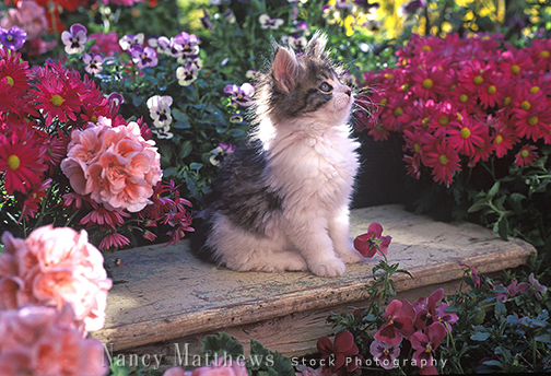 Description: maine coon kitten in garden