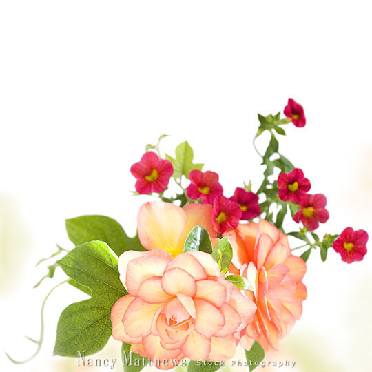 Description: peach begonias with petunias