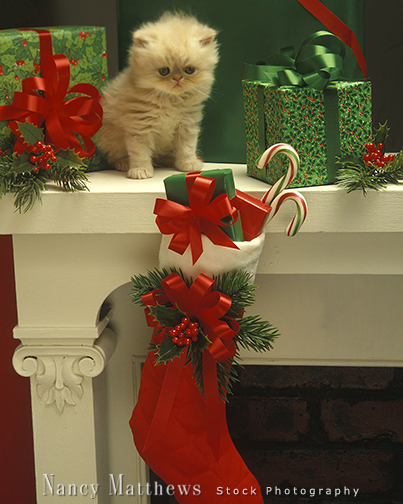 Description: kitten with christmas stocking