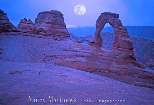 Description: spring storm at delicate arch, utah in moonlight