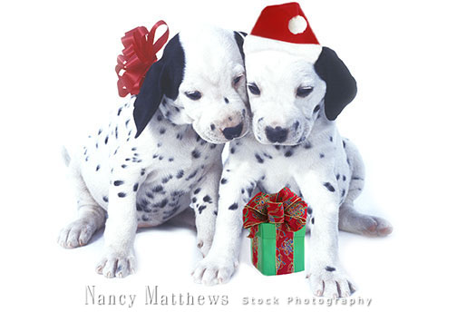 Description: two dalmatian puppies at christmas