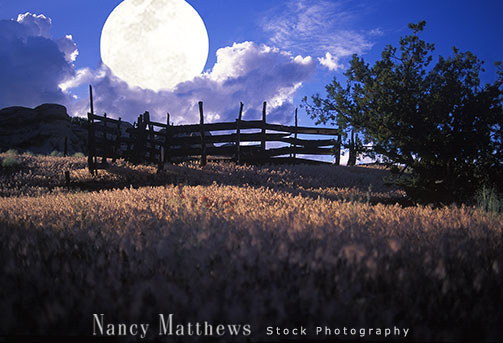 Description: old ranch in utah with a rising moon