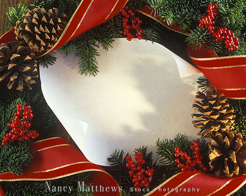 Description: pine cone and ribbon border with white paper