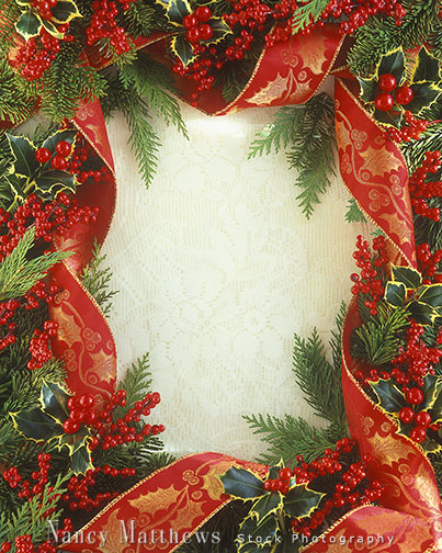 Description: red ribbon border with holly and berries