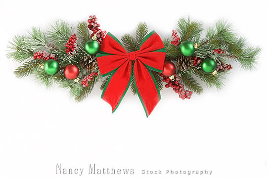 Description: bough with red bow and ornaments