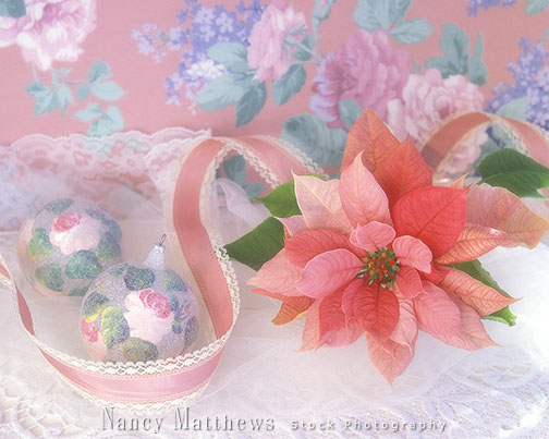 Description: pink poinsettia with ornaments