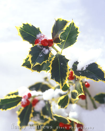 Description: holly with berries in the snow