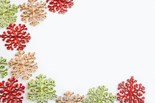 Description: red, green and gold snowflakes