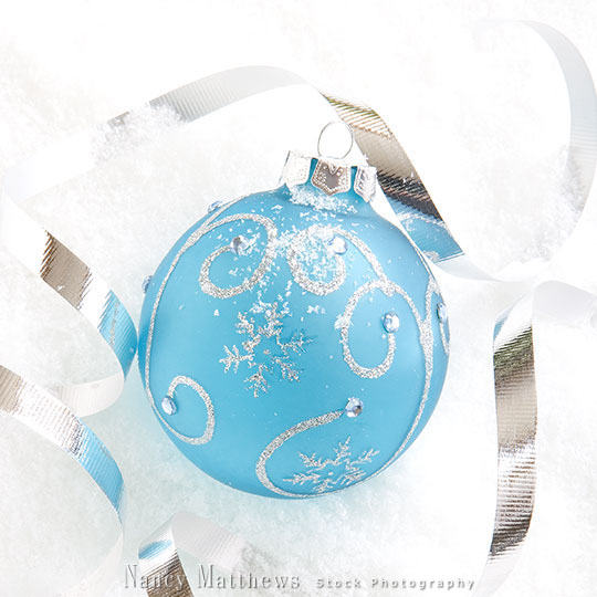 Description: blue ornament with ribbon