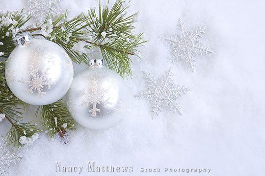 Description: white ornaments with snowflakes