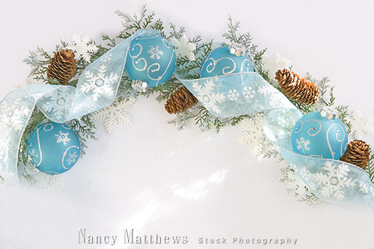 Description: blue ornaments with ribbon