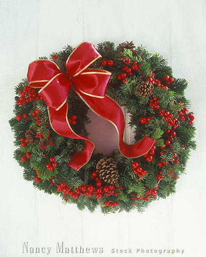 Description: wreath with a red bow and berries