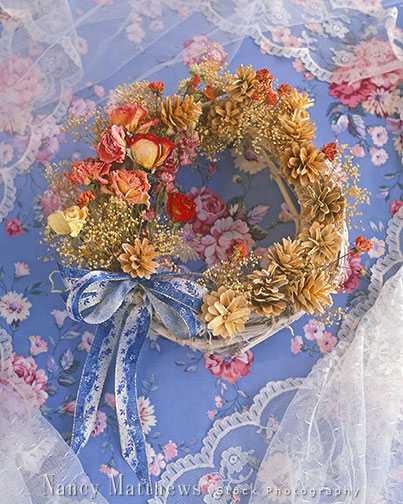Description: pine cone wreath with dried roses