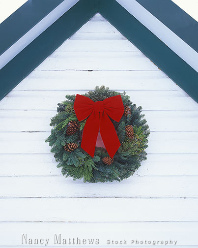 Description: wreath with red bow on a house