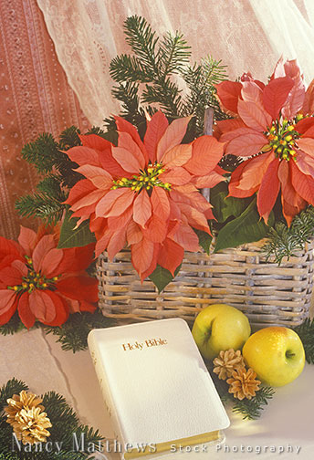 Description: bible with a poinsettia basket