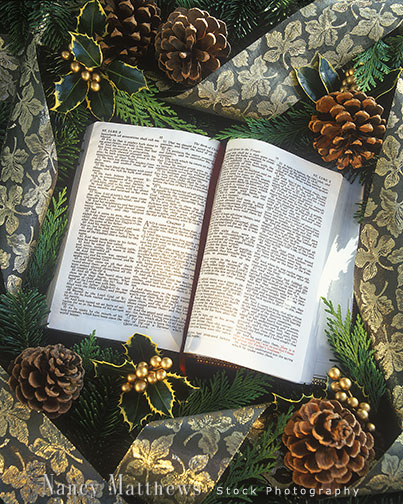 Description: bible with ribbon and pine cones