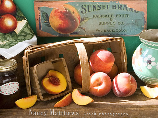 Description: basket of peaches and preserves