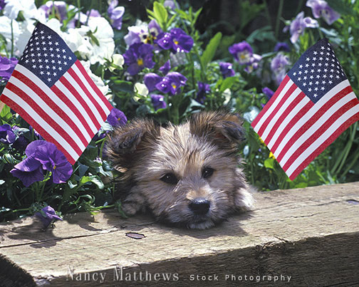 Description: terrier puppy with american flags