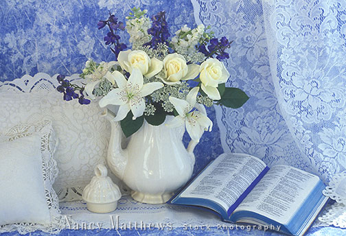 Description: bible with vase of flowers