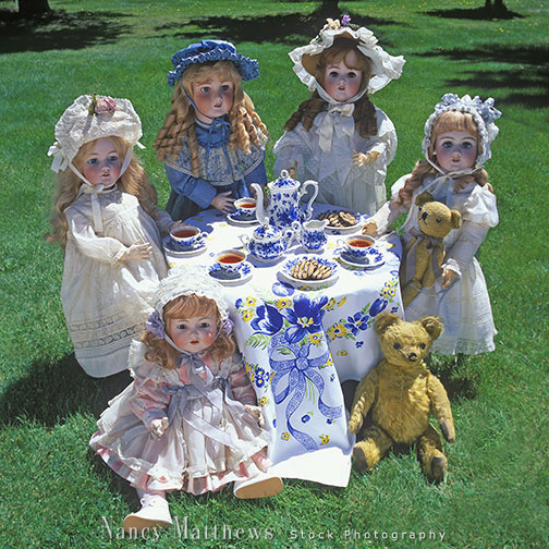 Description: antique dolls at a tea party
