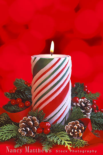 Description: christmas lights with a candle