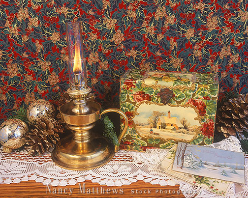 Description: lamp and christmas postcards