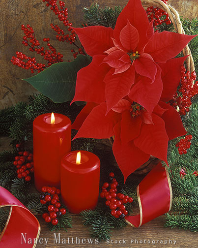 Description: two red candles with poinsettias