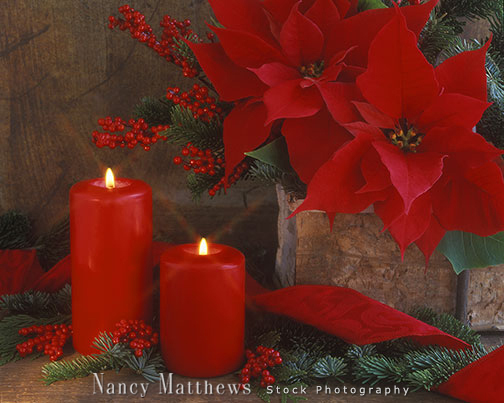 Description: two candles with red poinsettias